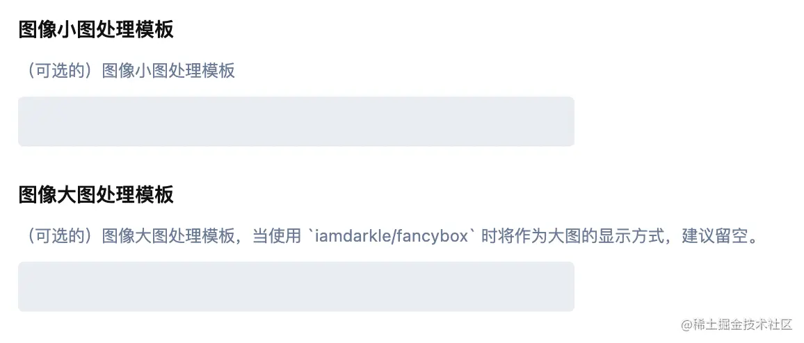 640px的模板作为小图处理模板,而大图处理模板留空。这种配置可以使得帖子的浏览图使用的是一个较小的尺寸,而点开大图显示的时候使用的是完整尺寸,比较人性化。 图像处理的模板,是 ImageX 提供的图像处理概念,可以在火山引擎 ImageX “图像处理配置”中进行配置,形如“tplv~xxxx.webp”