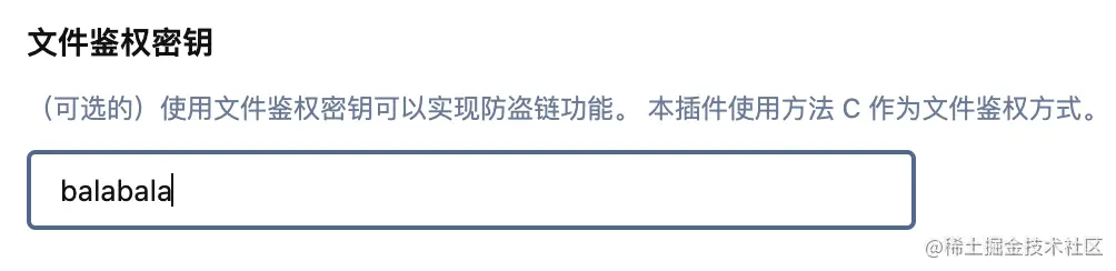 把刚刚在火山引擎控制台里设置的鉴权密钥填写到集成插件的鉴权密钥中,防盗链功能即可生效。