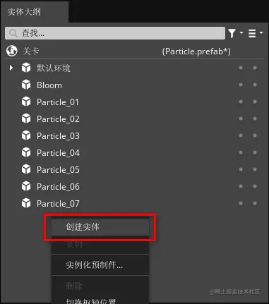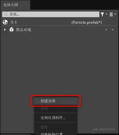 4、在“实体大纲”窗口中鼠标右击选择“创建实体”。