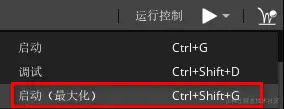 完成上述步骤后,点击运行按钮的下拉菜单,选择“Play (Maximized)”全屏运行,您就可运行此场景了。