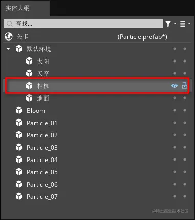 6、最后我们还需要调整一下相机的角度和位置,我们在“实体大纲”窗口默认环境中选中“相机”实体。