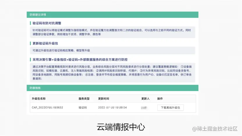 举个例子。当A客户想要登录某个网站时,首先要输入登录信息并通过验证码来验证其安全性,如果首次登录成功,那么他就会被认定为安全用户,如果该账号多次尝试登录未果,那么,此时验证码就要开始怀疑他的身份,而这一过程会被云端数据中心抓取到数据并进行分析,分析之后表明该用户不是正常用户,或者为疑似风险用户,或者为风险用户。此时,云端情报中心可针对风险标签对该用户进行风险分析并提出针对性的防御手段。云端策略中心则沉淀了多种规则策略,可针对具体的风险做策略防御包。