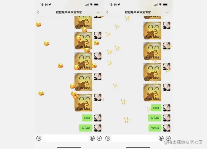 发送“xoxo”(满屏kiss小表情)/发送“么么哒”(满屏kiss小表情)/发送“miss u”(满屏小星星)/发送“想你了”(满屏小星星)