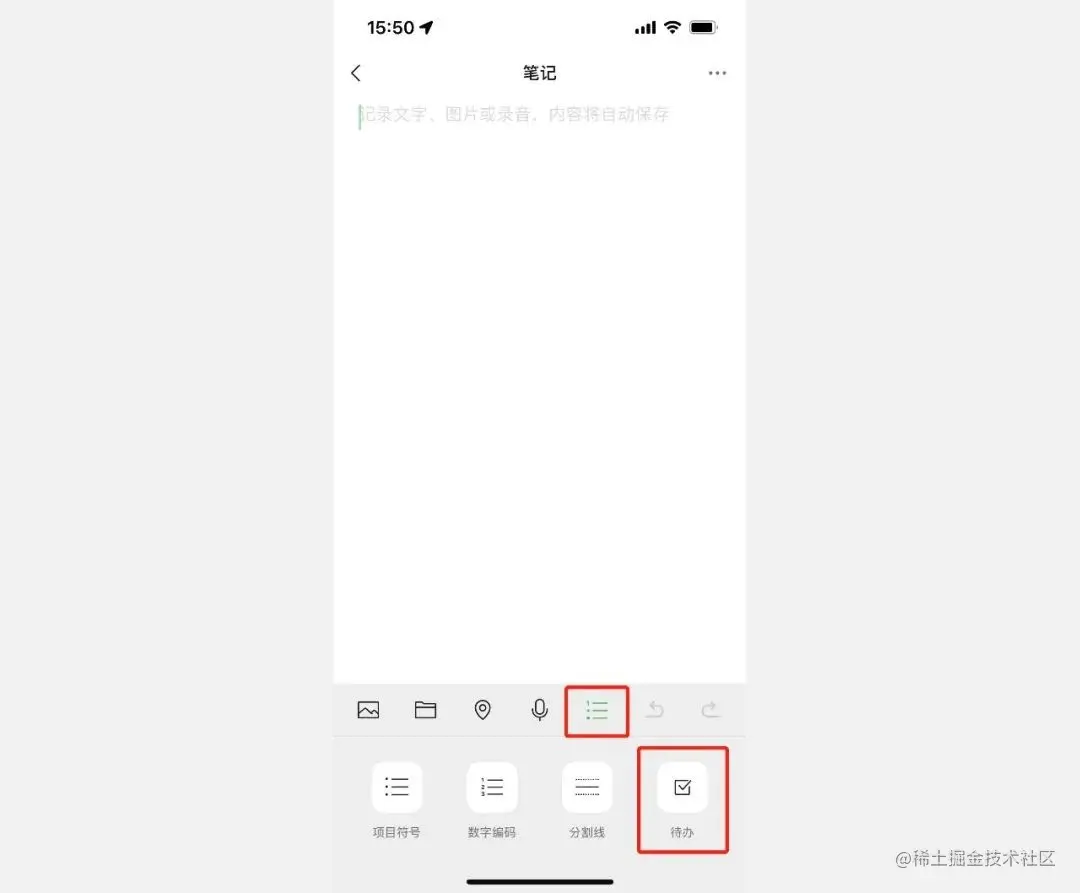 第三步:输入我们的待办事项,完成了的可以点击前面的方框打钩进行记录。然后再点击右上角的【…】还可以把待办事项置顶到聊天框上,这样我们就不用怕忘记做计划的事情了。