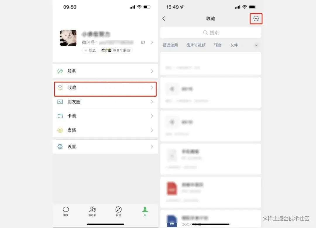 第一步:在个人主页点击【收藏】,进入后点击右上角的【+】新建一个收藏项目。