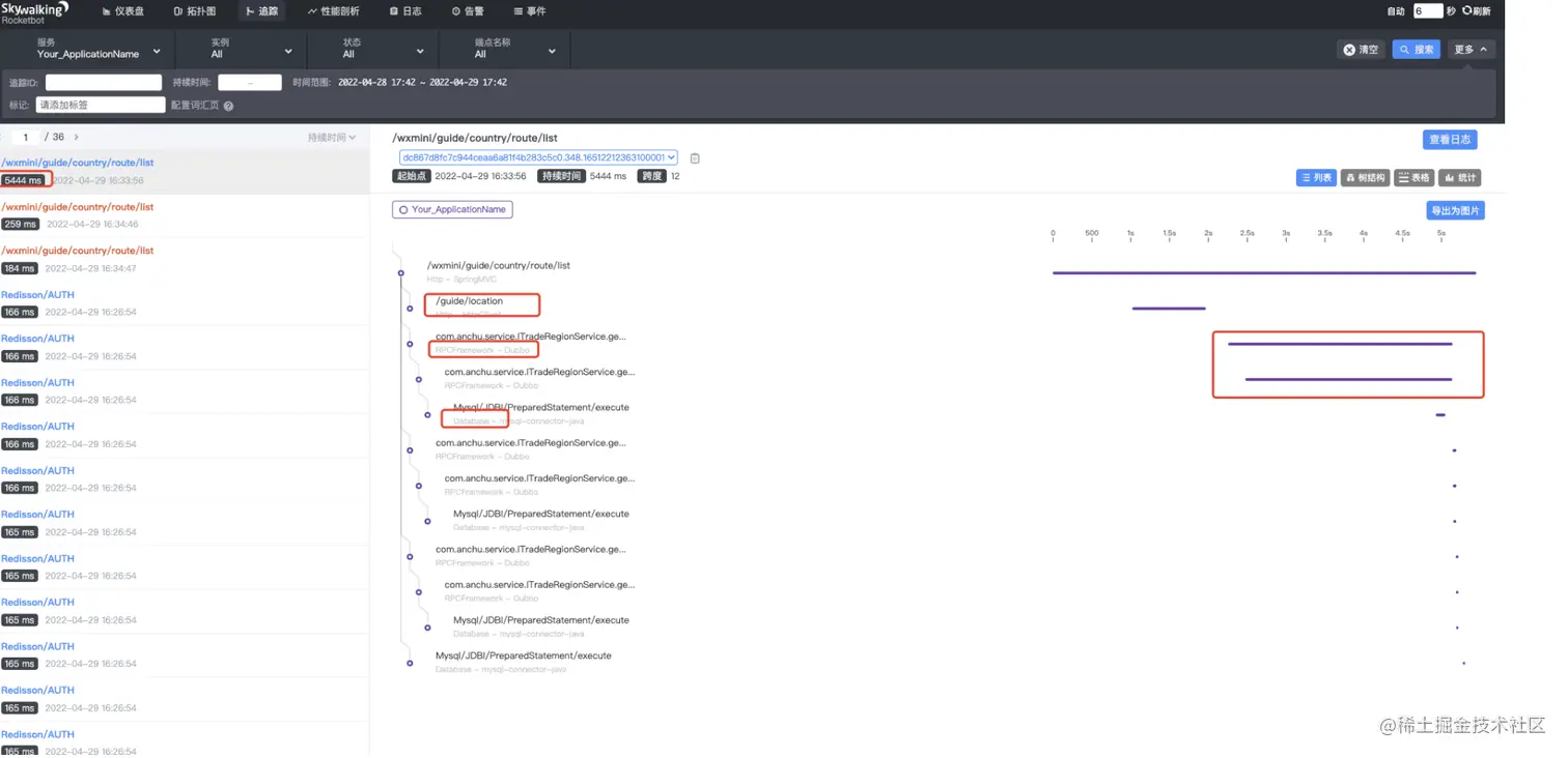 skywalking的ui中是支持traceId进行检索的,所以当出现性能问题的时候,打印出traceId,可以准确找到我们要定位的地方。