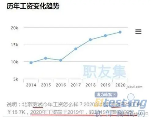 之前谈到一个很关键的词"行业前景",IT行业的前景毋庸置疑,那已经不能说好,而是非常的好。而软件测试,在IT行业中的比重也越来越高,从下图不断上涨的测试薪资就可以看出软件测试当前有多么的火爆。