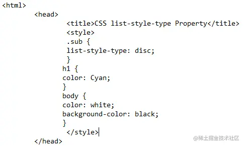 .sub { List-style-type: disc; }这里使用的列表样式是一个圆盘。如果我们在创建列表时不使用这个属性,形成的默认子弹是圆盘状的。