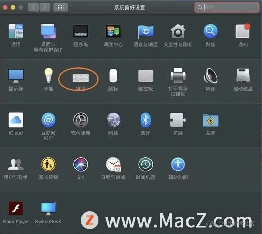 2、在系统偏好设置中,点击“键盘”;