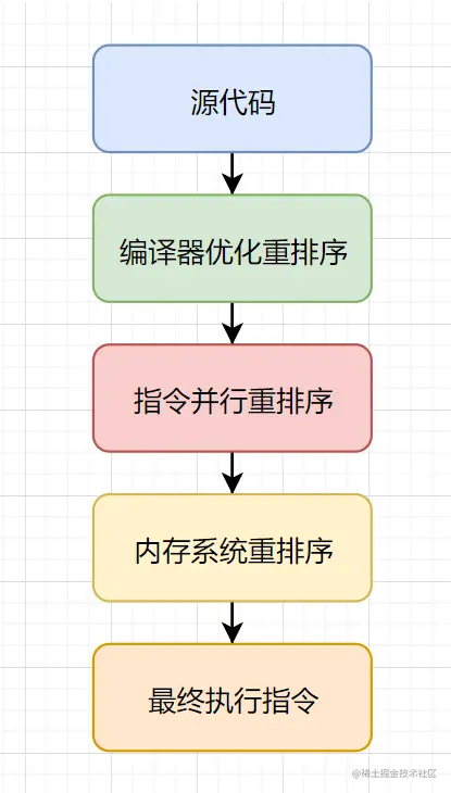 这是为啥呢?指令重排序了解一下,指令重排是指在程序执行过程中,为了提高性能, 编译器和CPU可能会对指令进行重新排序。CPU重排序包括指令并行重排序和内存系统重排序,重排序类型和重排序执行过程如下: