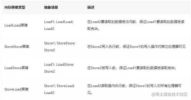- 在每个volatile读操作的后面插入一个LoadLoad屏障。