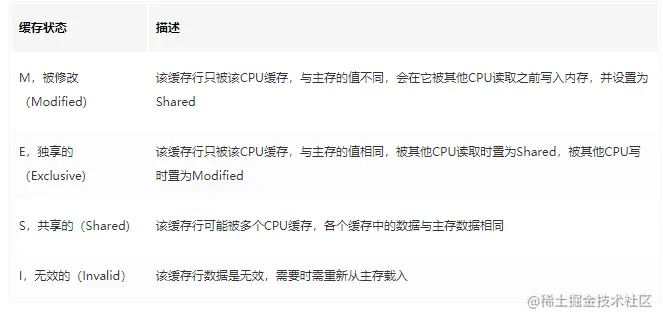 CPU中每个缓存行标记的4种状态(M、E、S、I),也了解一下吧: