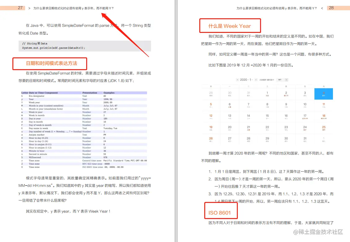为什么要求日期格式化时必须有使用y表示年,而不能用Y?