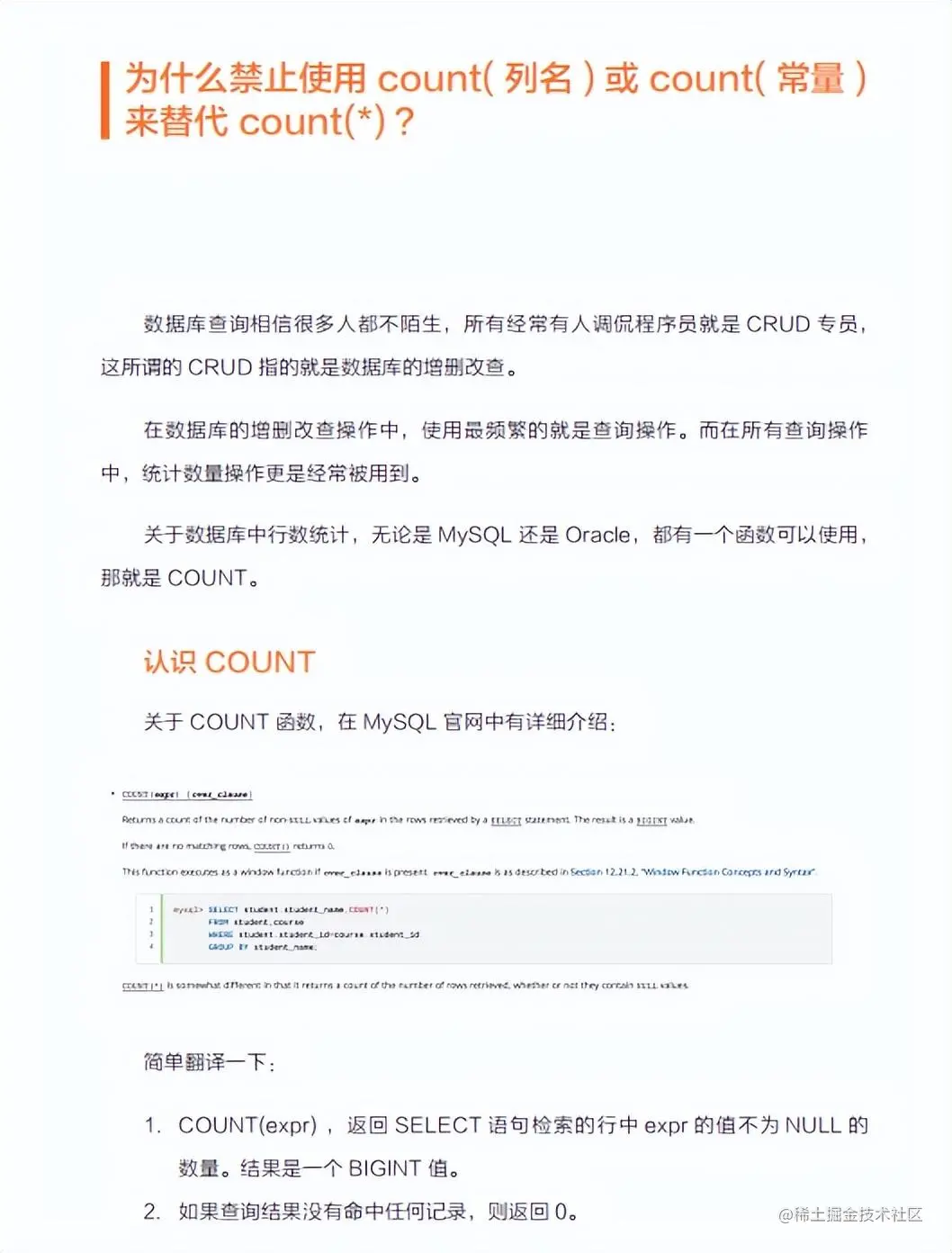 为什么禁止使用count(列名) 或count(常量) 来替代count(