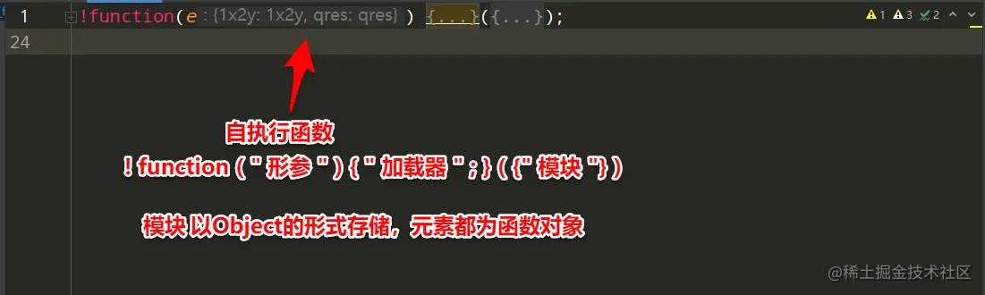重写自执行函数 !function('形参'){'加载器函数'}(['扣取的模块']) 或者 !function('形参'){'加载器函数'}({'扣取的模
