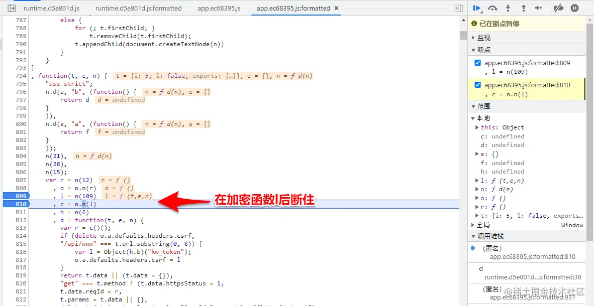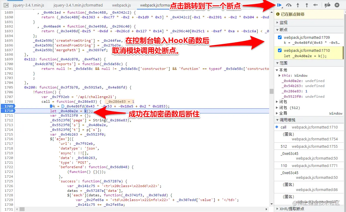 3.因为WebPack是链式调用模块,不可同时HooK多个加密函数,并且一定要在加密函数和加密函数后打上断点。