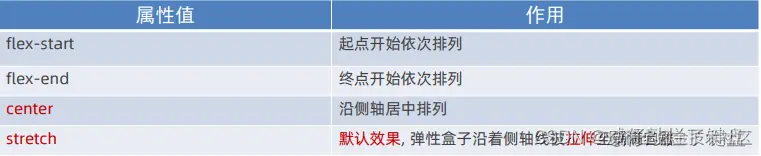 - 修改主轴对齐方式:justify-content:()