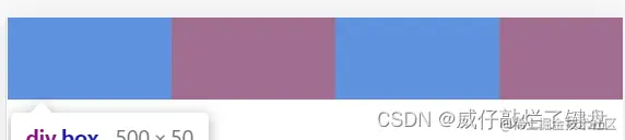 .box{ width: 500px; height: 50px; background-color: pink; } .box div{ float: left; width: 20%; height: 50px; background-color: red; } .box div:nth-child(2n-1){ background-color: royalblue; }