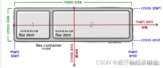 组成部分:弹性容器,弹性盒子,主轴,侧轴/交叉轴