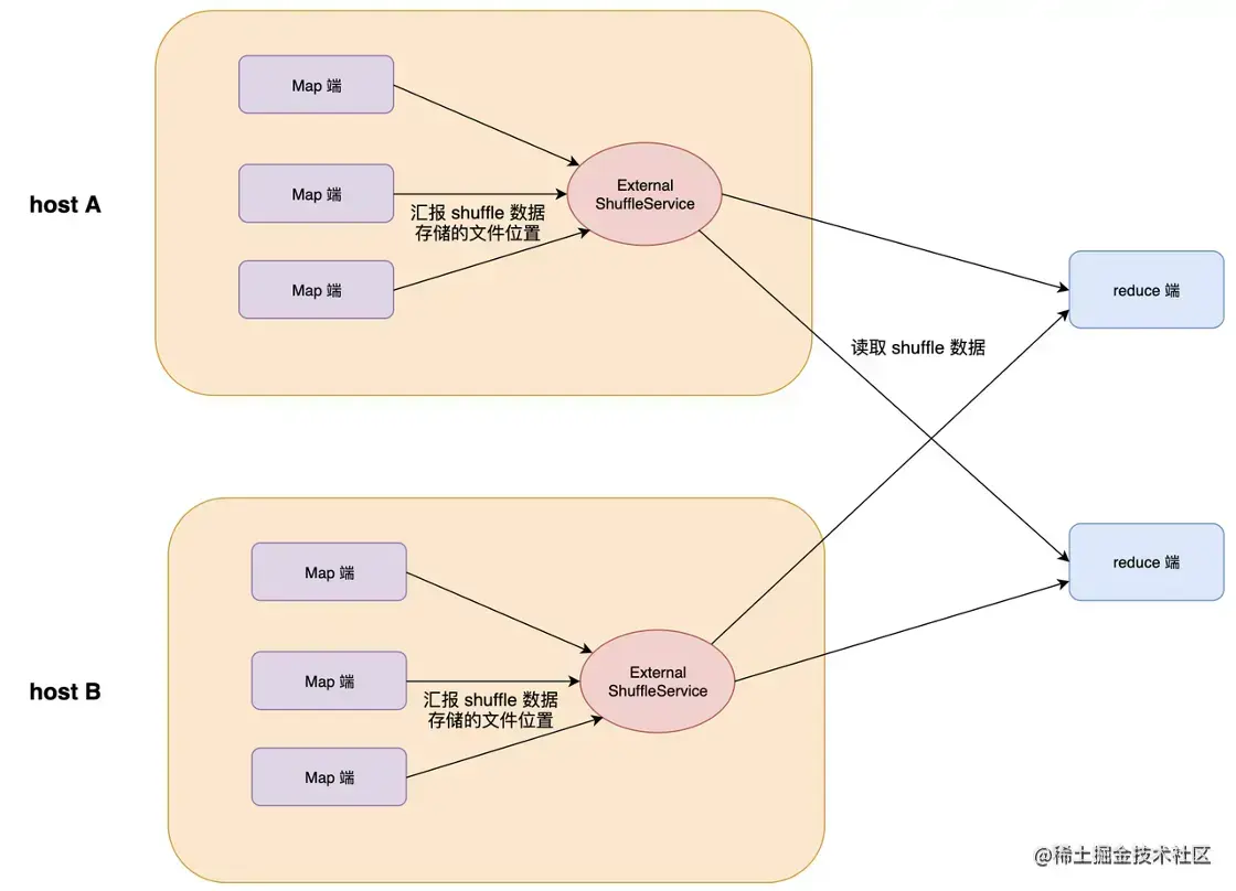 为了解决Executor为了服务数据的fetch请求导致无法退出问题,我们在每个节点上部署一个External Shuffle Service,这样产生数据的Executor在不需要继续处理任务时,可以随意退出。