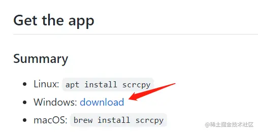 下载zip文件,解压,双击运行 scrcpy.exe 可执行文件即可在电脑上投影手机屏幕,如下图👇