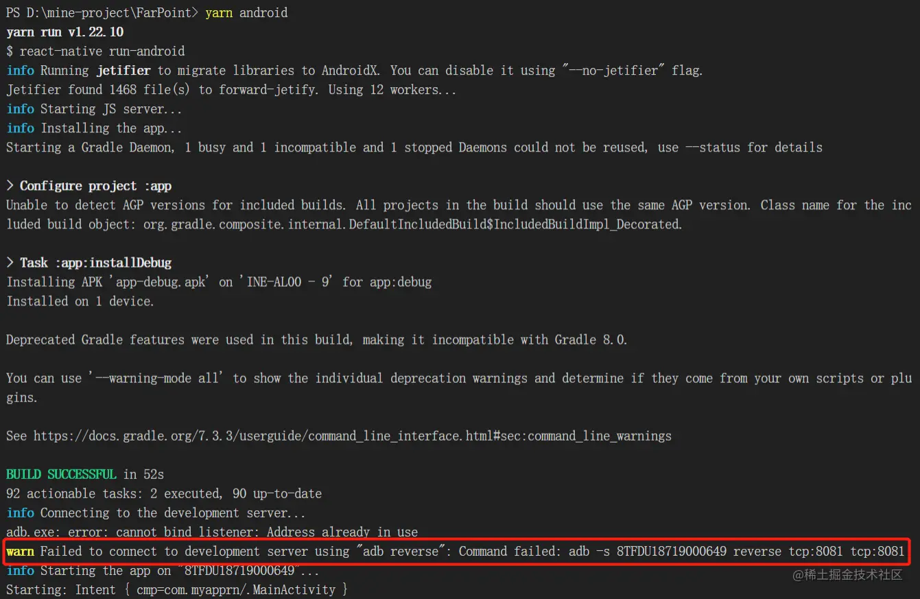 8.2、npm run android 每次都需要在手机上重新安装软件包