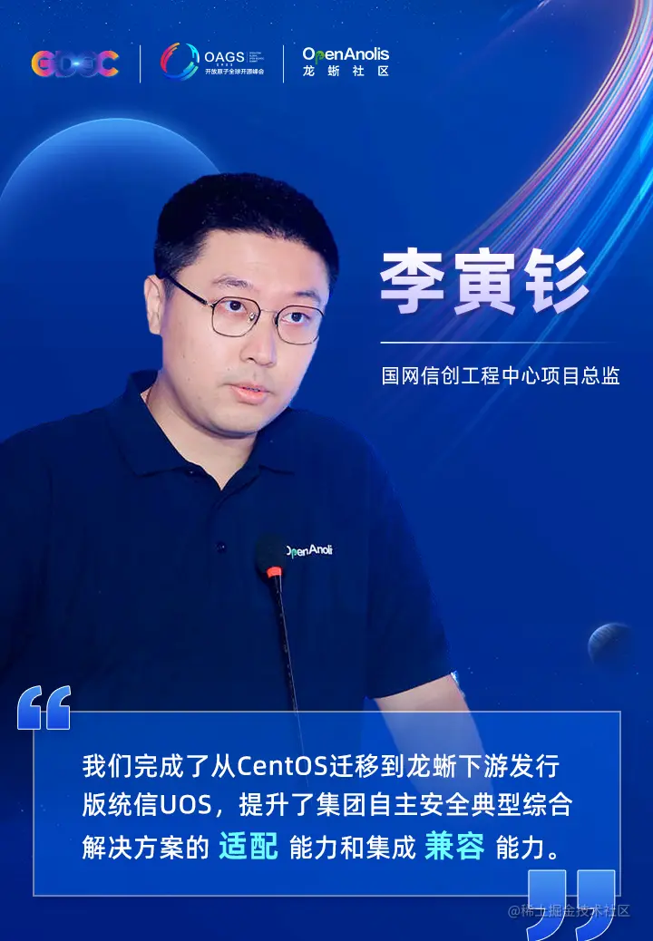 国网信创工程中心项目总监李寅钐带来《业务系统 CentOS 替换试点项目经验分享》,与现场嘉宾分享国网信通产业集团统一研发测试环境、企业生产经营管理系统、城市综合能源系统三个典型业务系统,其中的统信 UOS 服务器操作系统替换 CentOS 试点工作经验,且完成迁移后系统功能完整、运行稳定,提升了自主安全典型综合解决方案的适配能力和集成兼容能力。