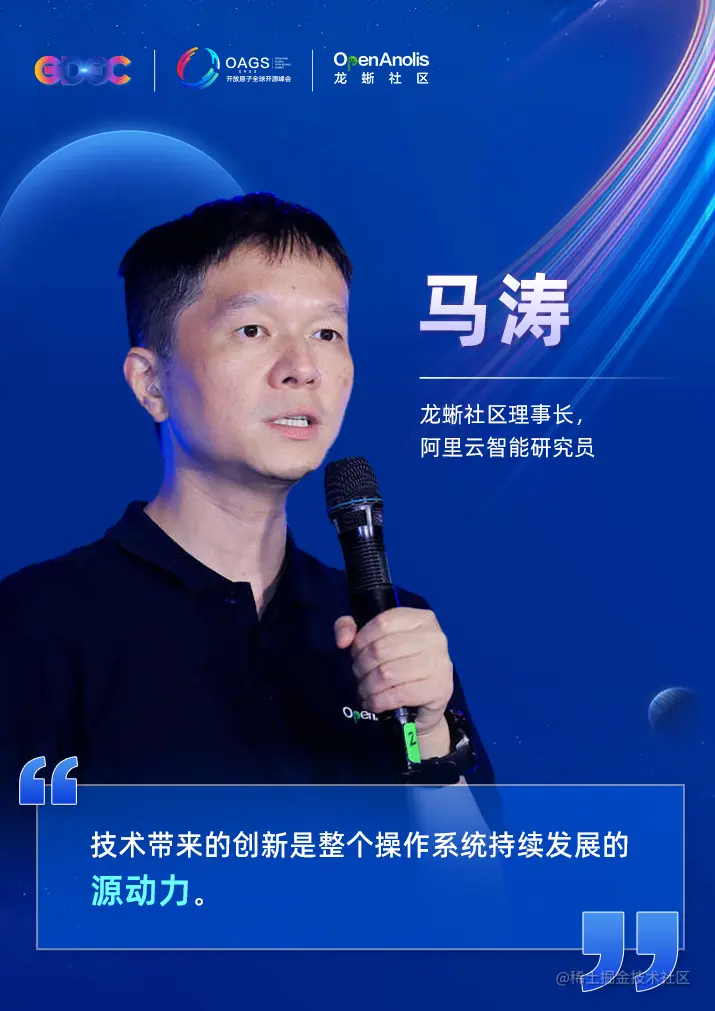 会上,龙蜥社区理事长、阿里云智能研究员马涛发表《同走龙蜥特色路,共创开源新未来》主题演讲。分享了龙蜥社区如何秉承“龙蜥特色”实现跨越式成长,首次公布 OpenAnolis 社区全景图,建设以云计算为终态的开源软件创新生态,讲述了如何在操作系统层面提供给开发者和用户一致的体验。