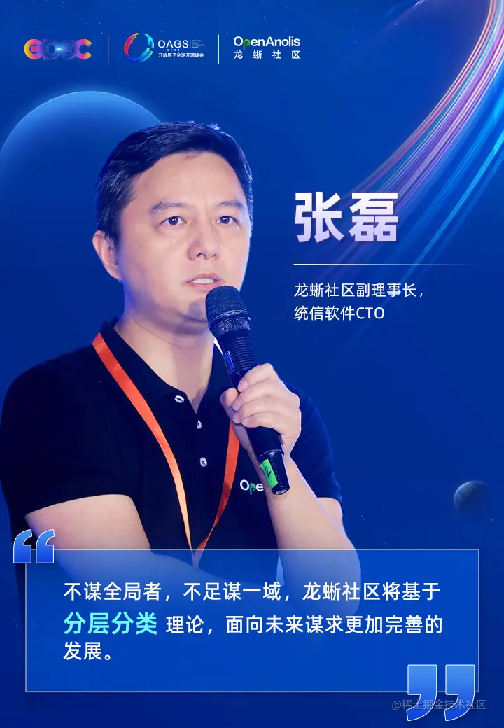 龙蜥社区副理事长、统信软件 CTO 张磊分享了《如何协力打造新一代操作系统》的主题演讲,讲述在开源社区的开发模式与传统闭源软件的开发理念不同下,如何汲取开源社区精华,结合闭源社区的结构分工模式,从而加快国产操作系统的开发,形成有中国特色的操作系统开发模式。