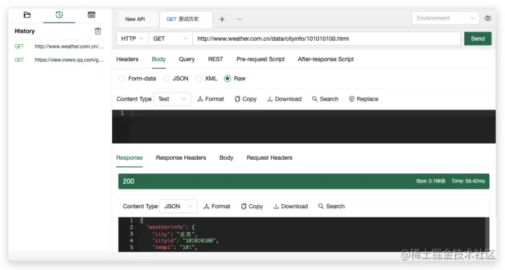 - 针对没有保存文档的 API 测试历史不知道去哪找,可以打开空白测试 Tab,但入口比较隐蔽