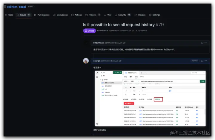 谈到** Eoapi** 测试历史功能的改版,这就要从我们的开源项目共建者在 Github 上提了一个 Issue 说起。