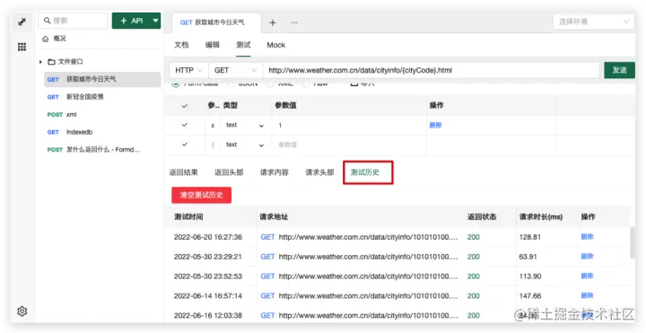 当然,在现版本(V 1.3.0)之前也有查看测试历史功能,但彼时测试历史跟随 API 信息,每个 API 有自己的测试历史,这样就会遇到两个方面的问题: