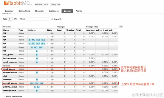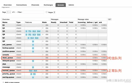 注意:因为我们修改了队列的参数,所以需要将原来的队列删除后才能重新创建。