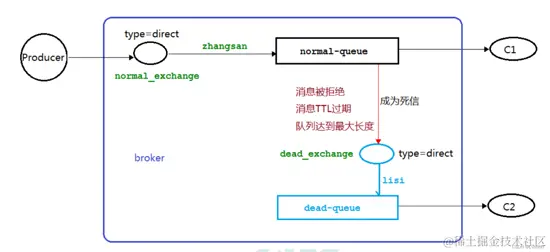 3. 消息被拒绝(basic.reject 或 basic.nack)并且requeue = false