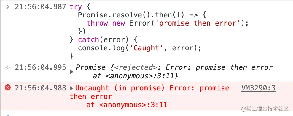 | Promise | window.addEvenListener('unhandledrejection', e => {}, true)window.addEvenListener('rejectionhandled', e => {}, true) |