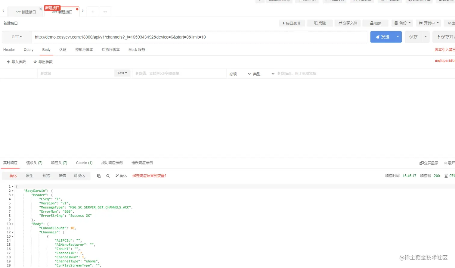 2)然后调用获取设备以及通道接口;