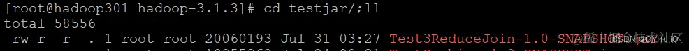 [root@hadoop301 testjar]# hadoop jar Test3ReduceJoin-1.0-SNAPSHOT.jar wyh.test3.reducejoin.ReduceJonMain