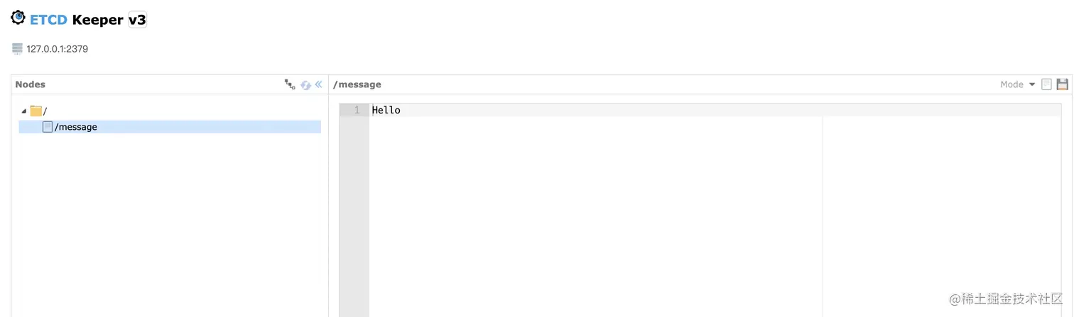 默认etcdkeeper docker启动是连接本地的2379端口,所以直接使用的 host 模式启动即可,然后就可以通过 8080 端口直接创建文件配置 etcd 中的数据了。