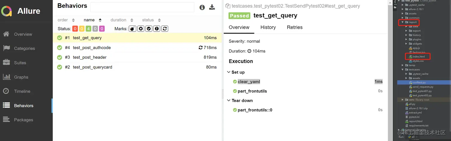 4.2、生成allure报告(通过临时的json文件去生成allure报告,在pytest的主函数中添加os.system("allure generate ./temp -o ./report --clean"))