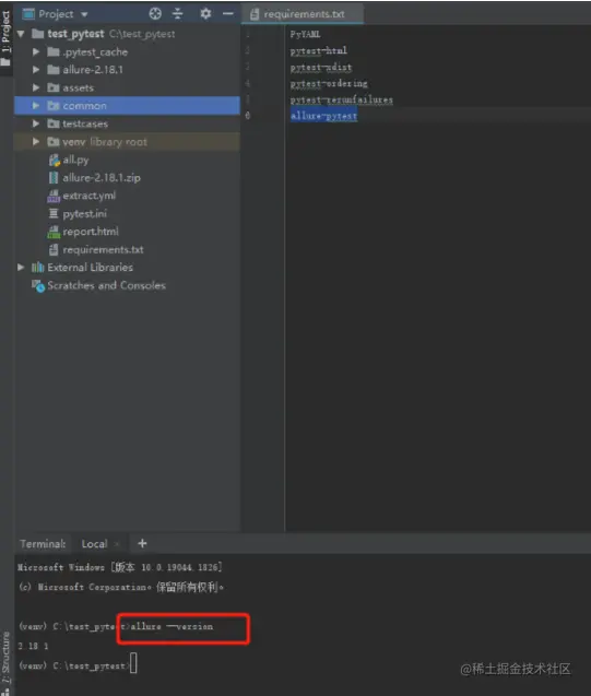 3、打开pytest项目安装allure-pytest后重启pycharm