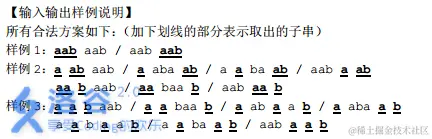 现在要从字符串 中取出 个互不重叠的非空子串,然后把这 个子串按照其在字符串 中出现的顺序依次连接起来得到一个新的字符串。请问有多少种方案可以使得这个新串与字符串 相等?