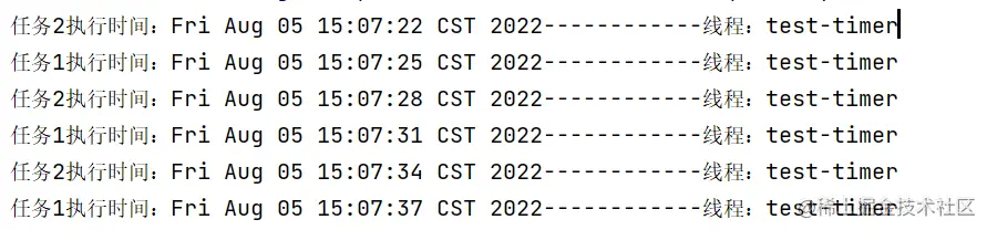 根据任务运行结果来看,任务1和任务2并没有按照我们所预期的间隔2秒来执行,基本上间隔都是在6秒。而且我们注册在同一Timer的任务,都是使用同一个在同一个线程上执行。TimerTask 是以队列的方式一个一个被顺序运行的,所以执行的时间和预期的时间可能不一致,因为前面的任务可能消耗的时间较长,则后面的任务运行的时间会被延迟。延迟的任务具体开始的时间,就是依据前面任务的"结束时间"
