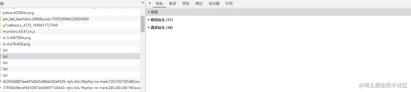 网络(Network)栏 我们可以看见该网站的所有请求,并查看接口的详细信息