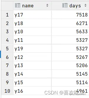 习题:查询所有员工的入职天数,并根据入职天数倒序排序。