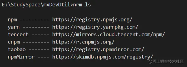 下图是使用nrm ls命令查看镜像: