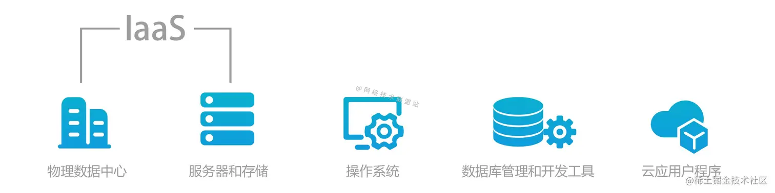 IaaS,供应商为用户提供对存储、网络和服务器等计算资源的访问,公司在服务提供商的基础架构中使用自己的平台和应用程序。