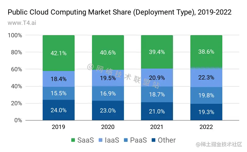 SaaS也称为云应用程序服务,是最全面的云计算服务形式,通过 Web 浏览器提供由提供商管理的整个应用程序,SaaS 非常适合没有能力开发自己的软件应用程序的小公司或初创公司。