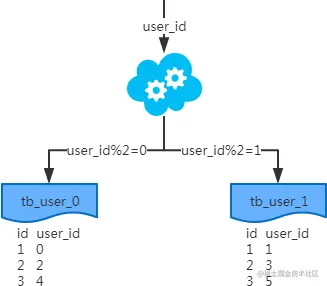 水平切分:将同一个表中的数据进行分片保存到不同的数据库中。例如:一个用户表,我们可以将用户分片保存的不同的数据库中,可以根据 用户的ID(userID),userID%3==0的用户放到一个库中,userID%3==1 放到一个库中,userID%3==2放到一个库中。