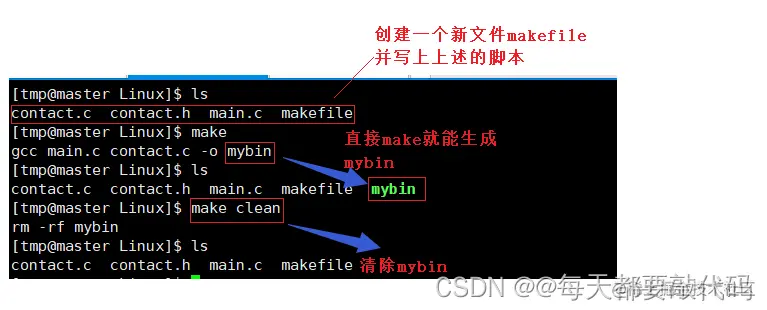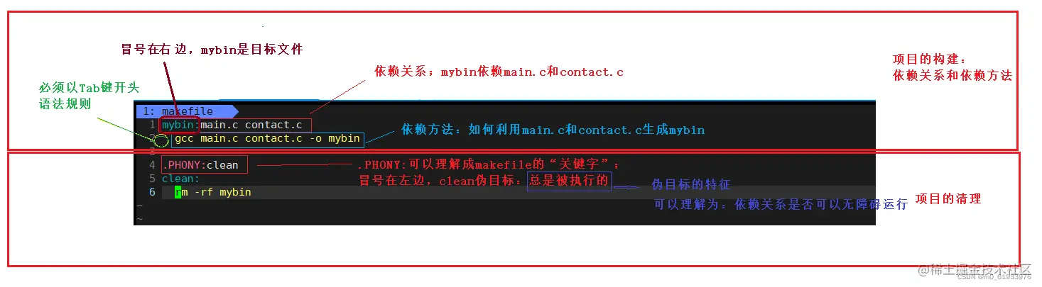 mybin:main.c contact.c 2 gcc main.c contact.c -o mybin 3 4 .PHONY:clean 5 clean: 6 rm -rf mybin