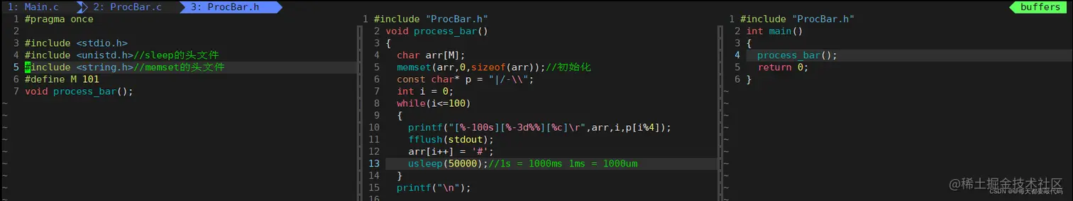 ❤️我们还是分成三个部分:ProcBar.h头文件的包含等、ProcBar.c具体函数的实现、Main功能的测试!